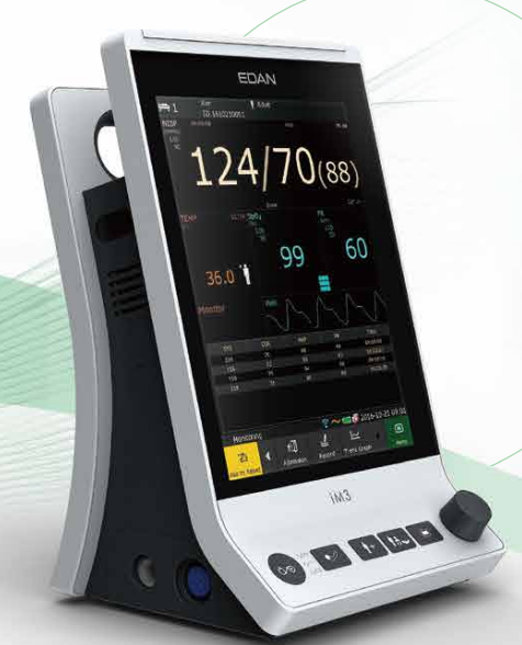 הממשק של EDAN iM3 כולל תצוגת LCD צבעונית בגודל 8 אינץ', עם מגע מלא, תפריטים בעברית ואפשרות להגדלת נתונים למעקב מרחוק. קיימת תאורת התראה היקפית 360°, המתריעה על חריגות במדדים באופן מיידי – גם בסביבה רועשת או עמוסה. בנוסף, ישנם קיצורי דרך למדידות מיידיות, ניתוח אוטומטי של נתונים והפקת דוחות בלחיצת כפתור.