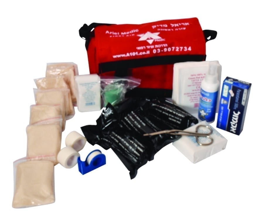 תיק עזרה ראשונה לרכב קומפטי מזווד ומאורגן לטיפול במגוון פציעות: דימומים, חתכים, שברים, חבלות ועוד ועוד.
